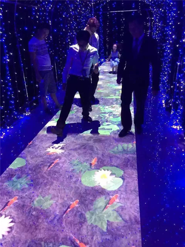 展覽會的主要目的是讓參觀者對商家的產品有所了解,產生好感。那么地面互動投影的運用則恰到好處,它可以吸引參觀者,讓他們停留、駐足,從而會對商鋪有更深的了解。